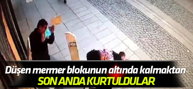 Düşen mermer blokunun altında kalmaktan son anda kurtuldular