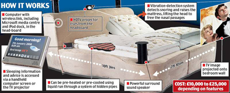 Bu ilginç yatak kışları ve soğukta ısıtırken, yazları yatağın içerisinden geçen su dolu borularla soğukluk veriyor.Isıtma ve soğutma işlemini yatağın sahibinin ısısına göre otomatik olarak ayarlıyor.
