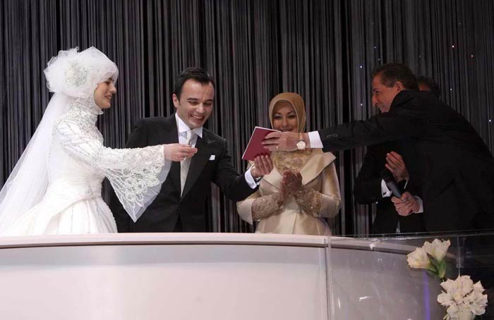 Çiftin nikâhını İstanbul Büyükşehir Belediye Başkanı Kadir Topbaş kıydı. Nikâh şahitleri ise Başbakan Recep Tayyip Erdoğan ve eski TBMM Başkanı Manisa Milletvekili Bülent Arınç. Nikâh töreni için aile yakınlarının yanı sıra siyaset, iş ve sanat dünyasından bin 910 kişiye davetiye gönderildi. Nikâh törenine çiçek gönderilmemesi istenirken, dileyenler Kayseri’de oluşturulan ormana kendi adına ağaç dikebilecek.