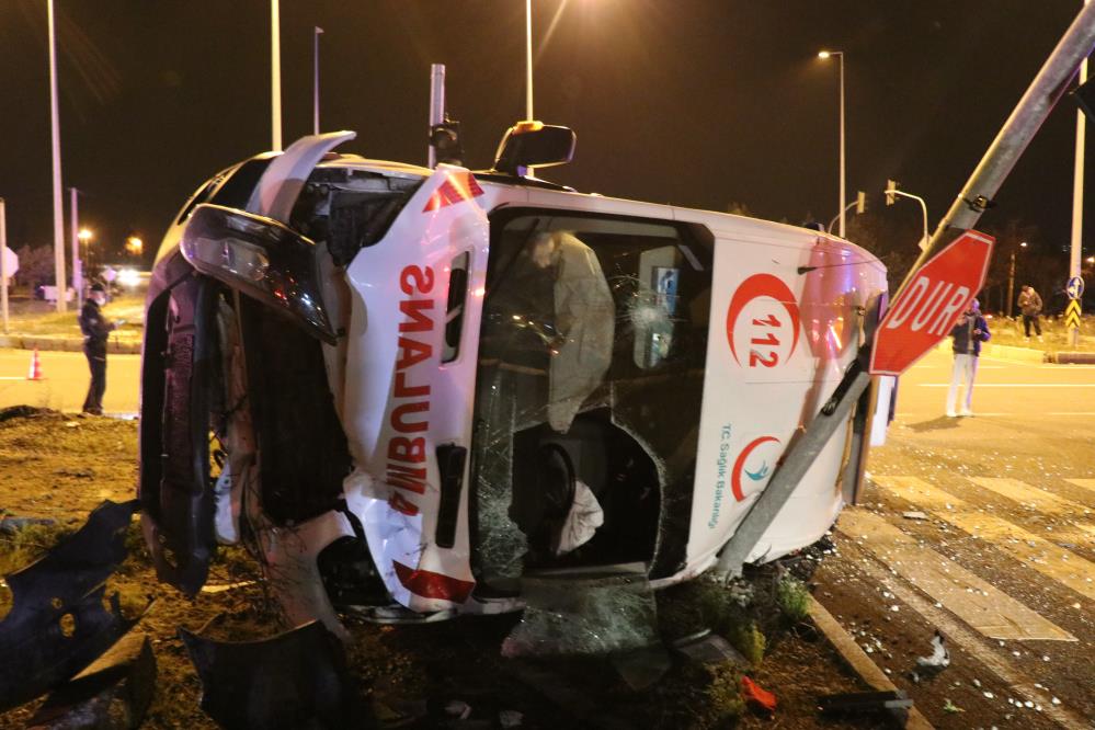 Ağır yaralı hasta taşıyan ambulans otomobille çarpışıp devrildi! 3’ü sağlık personeli 5 yaralı