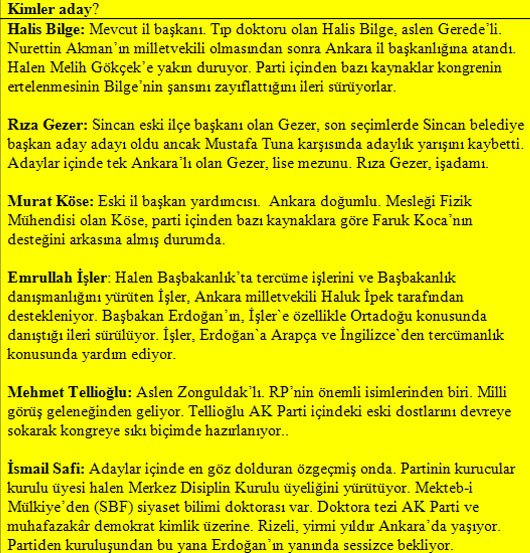AK Parti Ankara’da kongreye çok adayla gidiyor. Zaten kongrenin ertelenmesinin en önemli sebeplerinden biri de çok adaylı bir yarışın olması.