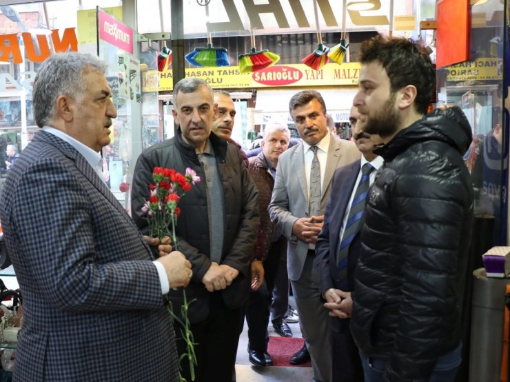 Yazıcı, vatandaşlarla sohbet etti, 8 Mart Dünya Kadınlar Günü dolayısıyla çiçek dağıttı.
