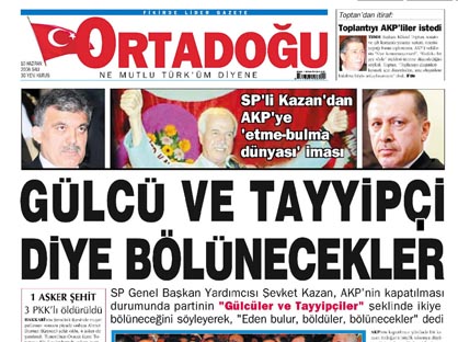 Kazan'ın sözleri, MHP'nin yayın organı 'Ortadoğu' gazetesinin manşetinde yer aldı.