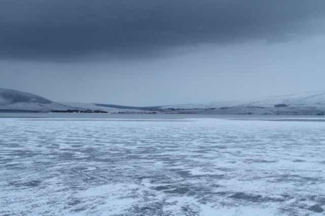 Sıcaklığın dün gece sıfırın altında 15 dereceye düştüğü Çıldır ilçesinde Türkiye ile Gürcistan sınırı arasında yer alan Aktaş Gölü`nün yüzeyi tamamen buzla kaplandı.