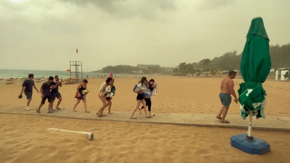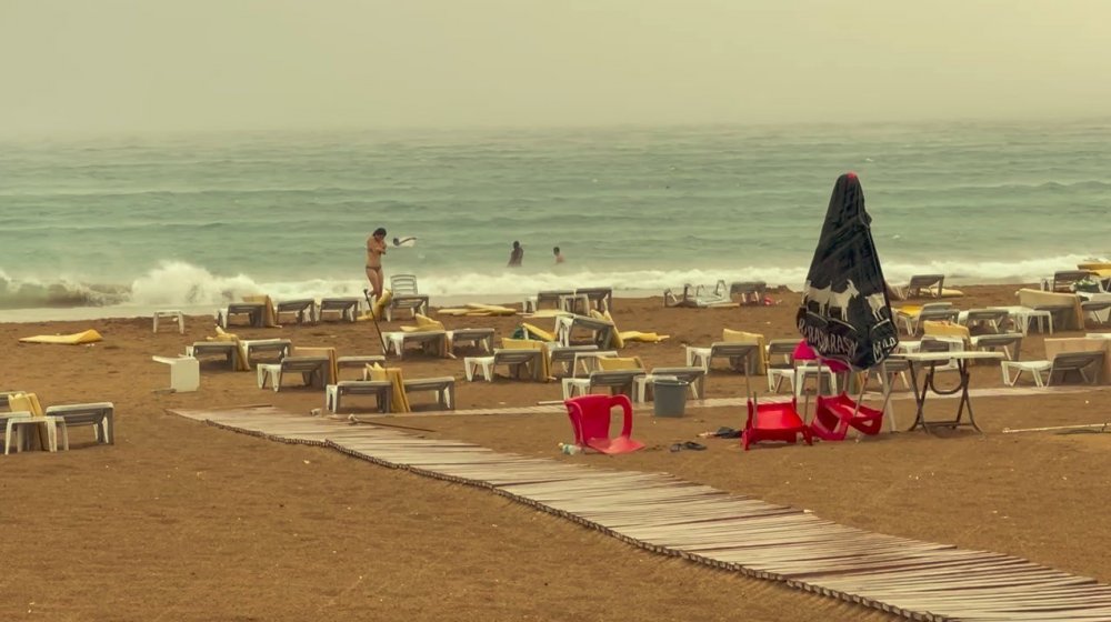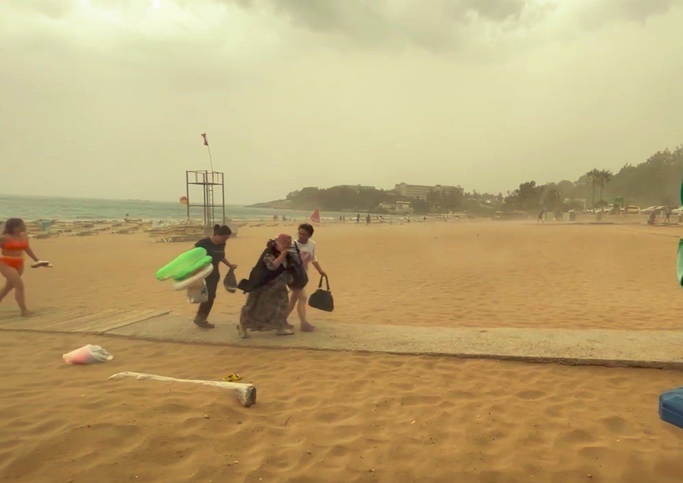İncekum plajında ise fırtınaya açık havada yakalanan yerli ve yabancı turistler adeta kaçak yer aradı. Plajı terk etmekte bile zorlanan tatilciler, denize 100 metre mesafedeki kafeye sığınmaya çalışırken sandalyeler ve şişme botlar savruldu. Plajdaki ağaçların dallarını da kıran ve yaklaşık 10 dakika etkili olan fırtına yerini yeniden güneşli havaya bıraktı.