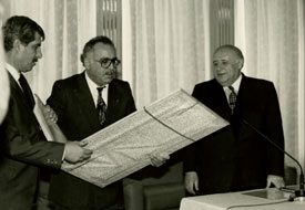 BİRLİK BAŞKANI İKEN ESNAF SARAYINI YAPTIK VE DEMİREL İLE İNÖNÜ’NÜN KATILIMI İLE BURAYI TÖRENLE HİZMETE AÇTIK