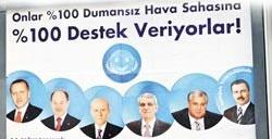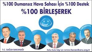 Başbakan Recep Tayyip Erdoğan, Sağlık Bakanı Recep Akdağ ile birlikte MHP Lideri Devlet Bahçeli, DTP Grup Başkanı Ahmet Türk, DSP Lideri Masum Türker ve Eski BBP Lideri Mahsin Yazıcıoğlu, 'Dumansız Hava Sahası hareketini destekliyoruz' afişinde yer aldı.