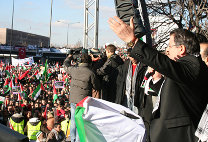 Miting alanında İsrail bayrakları yakılırken, birkişi elindeki postalla İsrail bayrağına vurdu. Bazı vatandaşlar ise namazlarını miting alanı içindeki çimlerin üzerinde kıldı. Tuba Yılmaz isimli kız çocuğunun okuduğu ''Ben Filistinli Çocuğum'' adlı şiir mitinge katılanları coştururken, bazı katılımcılar gözyaşlarını tutamayarak ağladı. Filistinli Ruba Tahir isimli Türkiye'de yaşayan Filistinli kadın da yaptığı konuşmada, hayatını kaybedenlerin çoğunluğunun masum çocuk ve kadınlar olduğunu belirterek, enkazların altında hala cesetlerin olduğunu söyledi.