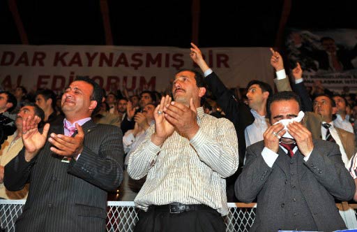 Partililer, sık sık tekbir getirerek, ''Başbuğ Muhsin'', ''Muhsinler ölmez vatan bölünmez'' sloganları attı.