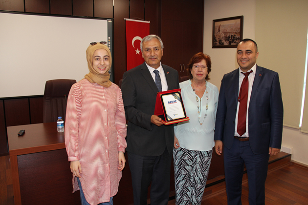Günün anlam ve önemine binaen Mütevelli Heyet Başkanı Dr. Mikdat Çakır da BEDAF yetkilisi Susan Birkin’e plaket takdim etti.