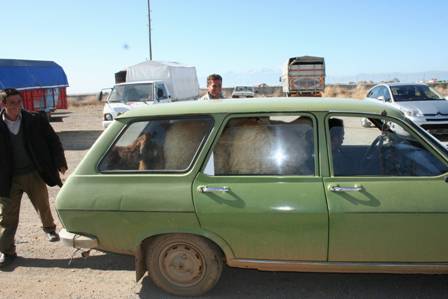 yolculuk bu olsa gerek" diye yorum yaptırtan ilginç bir taşıma manzarası yaşandı. Bir binek otomobilin içerisine tam 9 kurbanlık koyunun birden sığdırılması görenleri hayrete düşürdü. Beyşehir'deki kurbanlık pazarına Doğanhisar'ın Deştiğin beldesinden gelen 3 alıcı, satın aldığı 9 koyunu steyşın otomobilin bagaj bölümüne sığdıramayınca arka koltuğa da bindirdi ve ilginç görüntüler yaşanmasına neden oldu. Otomobilde koyunlardan yer kalmayınca ön koltuğa oturmak zorunda kalan 3 alıcı yolculuğa bu şekilde