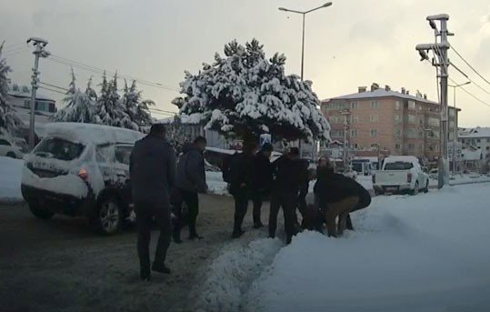 Bolu'da, kaldırımın karla kaplanması nedeniyle yolda yürüyen yaşlı adama otomobil çarptı.