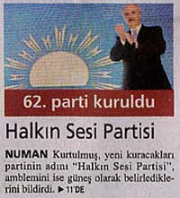 Numan Kurtulmuş'un siyaset sahnesine kattığı yeni partisi Halkın Sesi Partisi HASPAR, Milli Gazete'de de haber oldu.
