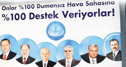 Sağlık Bakanlığı, 19 Temmuz'da başlayacak sigara yasağını duyurmak için afiş hazırlattı. Afişte Başbakan Erdoğan ve diğer siyasi parti liderlerine yer verildi. Hatta bir helikopter kazasında yaşamını yitiren merhum Muhsin Yazıcıoğlu'nun resmi bile afişte yer aldı. Afişte CHP lideri Deniz Baykal'ın bulunmaması dikkat çekti.