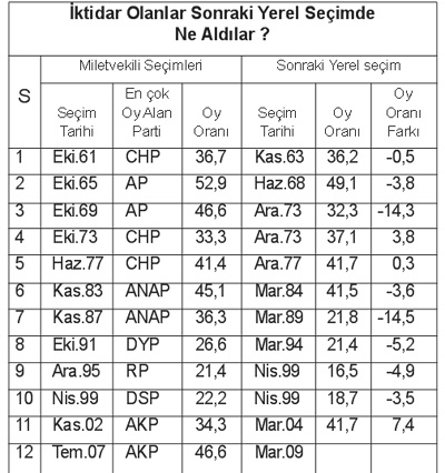 Özetlersek, seçim tarihimiz yerel seçimlerde iktidar partisinin oy kazandığı iddiasını doğrulamamaktadır.