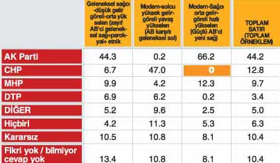 2- Yüksek gelire sahip, modern, AB’ye ve küreselleşmeye karşı geleneksel solcular.