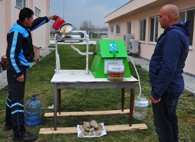 Tekniker Orhan Demirhan, AA muhabirine yaptığı açıklamada, ürettiği cihazla, atık yağların kanalizasyon hatlarına ve çevreye verdiği zararı ortadan kaldırmayı amaçladığını söyledi.