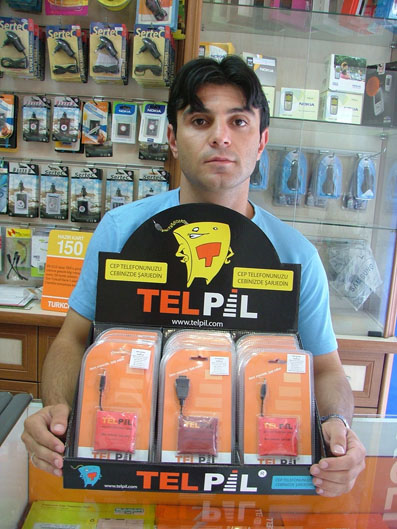 ''Cep telefonu kullanıcılarının temel problemi şarj bitimine çözüm üretilmesiydi. Cep şarjıyla bu sorun giderildi. Tüm cep telefonlarına hemen hemen uyumlu. Pazarda, çarşıda, piknikte, hastanede çok rahat kullanılabilir. Anahtar büyüklüğünde olduğu için taşınması çok kolay. 10 YTL'den satışını yaptığımız şarj aletini merak edip alan bile var. Telefondan şarjın bittiğine dair ses geldikten sonra Tel Pil takılıp konuşmaya devam ediliyor''