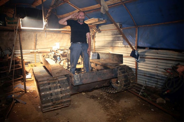 Ben askerde tankçıydım. Tankların da fren sistemi böyledir. Mesela sağ freni kitlediğinizde o tarafa manevra yapıyor. Paletleri de profillerle çark haline getirdim. O şekilde içini çalıştırıyor. Buna lastikleri takmamın amacı, suda da gidebilmek amacıyla. Lastikler kendi balanslarını alacak.