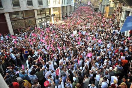 Genç Siviller'in öncülüğünde kurulan 'Darbeye Karşı 70 Milyon Adım' platformunun Taksim'deki protesto gösterisi başladı. Eyleme destek veren 20 sivil toplum kuruluşu, İstiklal Caddesi'nin sonundaki Tünel durağından Taksim Meydanı'na doğru yürüyor. Binlerce kişinin katıldığı yürüyüşte, 'Darbeye Karşı Ses Çıkar!' şeklinde pankartlar açılıyor. Yürüyüşe Adalet Ağaoğlu, Lale Mansur, Nazlı Ilıcak ve Yücel Sayman gibi isimler de katılıyor.
