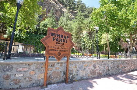 Meram Belediyesi tarafından kardeş şehir ilişkileri kapsamında Konya'nın Taşkent ilçesinde yaptırılan Mihrap Parkı'nın açılışı Dışişleri Bakanı Ahmet Davutoğlu tarafından gerçekleştirildi. Davutoğlu, burada yaptığı konuşmada Mihrap Parkı'nın Taşkent'e yakışır hale getirildiğini belirterek "Mihrap Parkı'nı güzelleştirdik. Meram Belediye Başkanımız Serdar Bey'e teşekkür ediyorum. İsmi de güzel kendi de güzel Mihrap'ı Taşkent'imize yakışır bir hale getirdik. Bu yalçın dağlara bizim dedelerimiz mührü vurmuşlar. Kondukları yerlere Pirlerkondu demişler, baktıkları kayaya Kıble Kayası, oturup dinlendikleri mekana Mihrap, içtikleri suya Sultan suyu demişler. Yani devletin sembolü Sultan, imanın sembolü Mihrap, imanın yöneldiği kıble ve irfanın bekçisi olduğu pirlerin konduğu diyar" dedi.