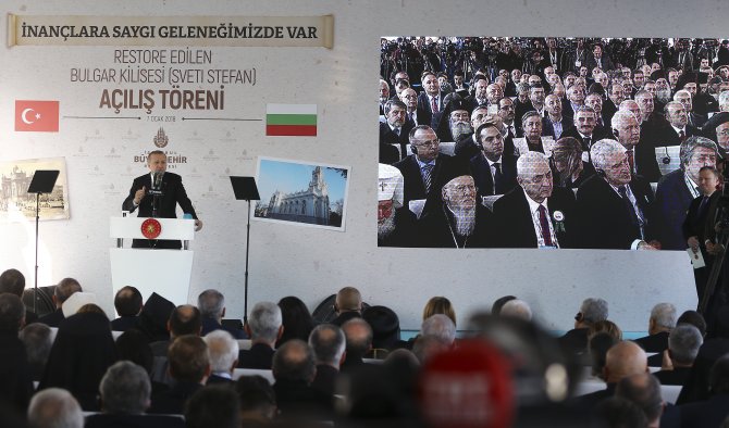 Kilisenin bahçesinde yapılan törende Cumhurbaşkanı Erdoğan, Bulgaristan Başbakanı Borisov, Başbakan Binali Yıldırım, açılış konuşması yaptı.