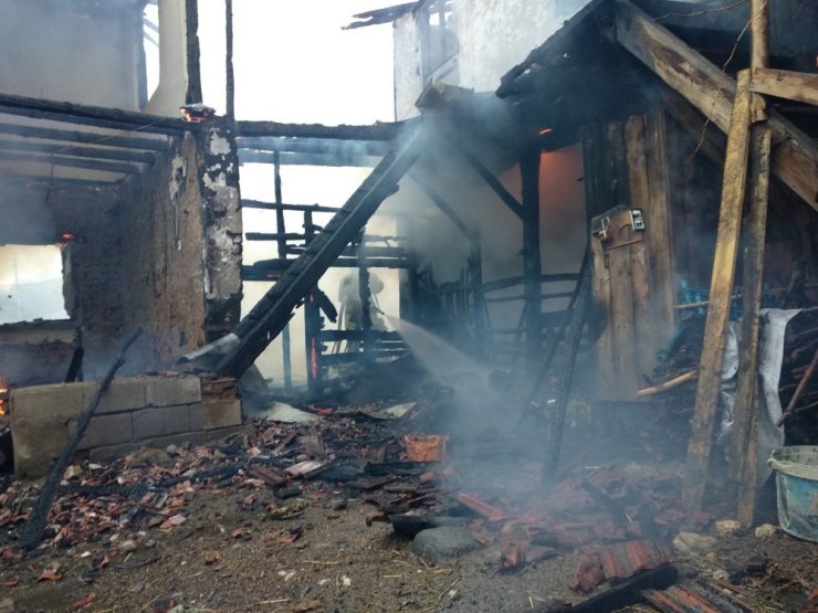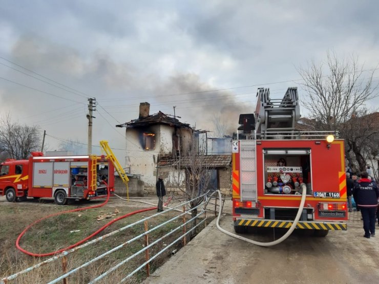 Denizli’de iki katlı ahşap ev alev alev yandı