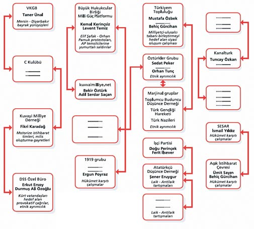 Şemanın istihbarat tarafından hazırlanmış olabileceği kanaatini yaratan göstergelerden biri buydu. Bugünkü Ergenekon şeması ile bu şemanın arasındaki fark ise Dink ailesinin eline geçen şemada kurum isimlerinin de bulunması.
