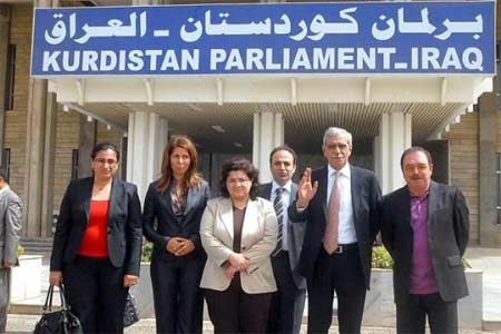 Ahmet Türk başkanlığındaki DTP heyeti, temaslarının ardından parlamento binasının önünde ‘Kürdistan Parlamentosu’ yazılı tabelanın altında gazetecilerin isteği üzerine hatıra fotoğrafı çektirdi.