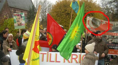 PKK'lı kalabalık Başbakan Erdoğan için iğrenç pankartlar açtı.