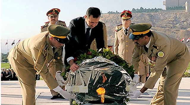 Beşşar Esed, Kasyun Dağı’nda bulunan anıta çelenk bırakırken görüntülendi.