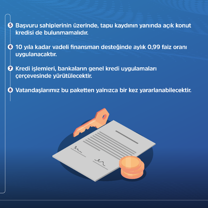 Kredi desteği kamu bankalarımız tarafından vatandaşlarımızın ilk konut alımını desteklemek amacıyla verilecek.