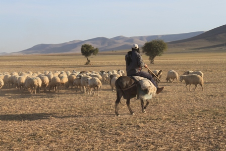 İkindi saatleriydi ama sıcak hala etkisini yitirmediği için hiç koyun sürüsü yoktu tarlalarda. Bayram’ın Yağlıbayat’ta Selahattin Çelik adlı bir arkadaşı varmış. Doğru onun evine vardık. Biz derdimizi Selahattin’e anlatırken hanımı hemen çayımızı koydu. Bizim sürüyü çekersiniz, diyerek telefona sarıldı Selahattin. Çobanla bir şeyler konuştuktan sonra, kalkın gidelim, çay oluncaya kadar çekip gelelim, dedi. Şansımıza iki sürü birden vardı karşımızda. Gün ışığının en güzel zamanıydı. Çoban Ali koyun eşeğine bindi, sürüsüyle epeyce fotoğrafını çektik. Eve döndüğümüzde, çayla birlikte mükellef bir sofra bizi bekliyordu.