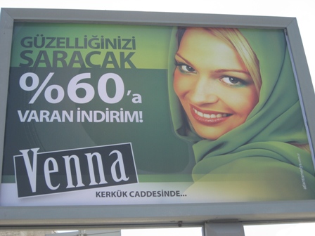 Bir başka açıkhava uygulaması aslında tam açıkhava reklam örneği gibi duruyor. Reklam Venna reklamı. Reklamda diyor ki “Venna Güzelliğinizi % 60’a varan indirimle Saracak” Venna’yı bu reklamdan bir eşarp, şal gibi bayanlara yönelik bir ürün markası olarak algılıyoruz. Aynen bunu söylemek istiyorlarsa süper bir açıkhava reklamı, tebrik ederim. Marka başka bir şeyleri satıyor ve böyle diyorsa yazık olmuş. O zaman reklam değil güzel bir grafik uygulaması olmuş.