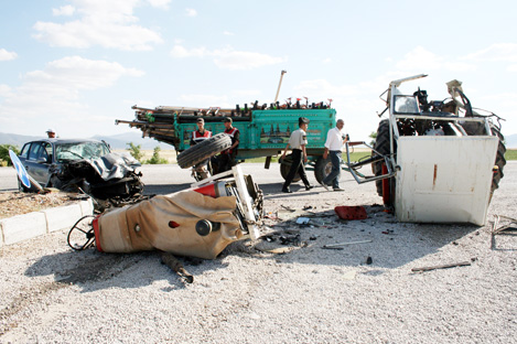 Kazada, traktör sürücüsü Mehmet Uğur, yanında bulunan Ayşen Uğur (39), otomobil sürücüsü İhsan Doğanay ile eşi Nihal (38), çocukları Eda (15) ve Şeyda (14) Doğanay yaralandı.