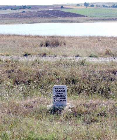 İŞTE KAZA YERİNE DİKİLEN MEZAR TAŞI