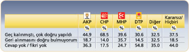 TRT 6 da Kürtçe yayın yapılması seçmenin çoğunluğu tarafından tasvip edilmemektedir. Araştırmaya katılanlardan AKP seçmeni dışındakiler, DTP de dahil olmak üzere yüksek oranda “Yanlış buluyorum” cevabı vermiştir.
