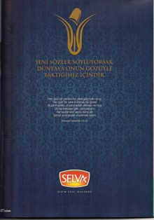 Üçüncü dergi reklamımız Selva. Reklamda üst başlık şunu diyor. “Yeni sözler söylüyorsak dünyaya onun gözüyle baktığımız içindir” diyor. Devamında,
