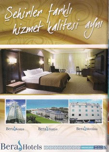 İkinci dergi reklamımız Bera Hotels. Yani Bera Otelleri. Kaç tane var? Bera Konya, Bera Mevlana olmak üzere Konya’da iki tane. Bir de Alanya’da Bera Alanya. Toplamda 3 otel. Şehir olarak Konya ve Antalya. Reklam neyin üzerine odaklanıyor? Neyiyle gurur duyulmasını istiyor? “Şehirler farklı hizmet kalitesi aynı” diyerek çok şehirde Bera var ve hizmet kalitesinde de aynıyız diyor. Farklı şehirleri göremedim. İki tane şehir bu mesajı söylemek için yeterli mi sizce? Hizmet kalitesini de hiç göremiyorsunuz! Oda görüntüsü hizmet kalitesi göstergesi midir? Değildir! 3 farklı otelin binasını göstermek hizmet kalitesi ise ancak inşaat şirketinin hizmet kalitesi göstergesi olabilir! Bir hizmet satarken binayı göstermek de nedir hiç anlamam. Hizmet binayla satılmaz! Binaları iletişimde kullanmayın demiyorum. Kullanın. Ama bizim yerel reklamcılığımızdaki gibi kör göze parmak şeklinde kullanmayın.