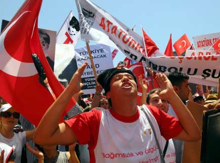 Sabah saatlerinden itibaren Kadıköy meydanı ve çevresi Türk bayrağı, ay yıldızlı rozet ve bandana satıcılarıyla doldu. Atatürkçü Düşünce Derneği’nin (ADD) pek çok şubesi, İşçi Partisi (İP), Türkiye Gençlik Birliği (TGB), CHP (Cumhuriyet Halk Partisi) Üsküdar Şubesi ve Cumhuriyet Gazetesi okurlarının katıldığı miting 11.00’da başladı. Yaklaşık 6 bin kişilik kalabalığın toplandığı ve eski TRT spikeri Mehpare Çelik’in sunuculuğunu yaptığı mitingde konuşan ADD Genel Başkan Yardımcısı Sina Akşin, “Atatürk devrimini görmeyenin gözleri kördür. Karşı devrimi görmeyenlerse gafildir” dedi.