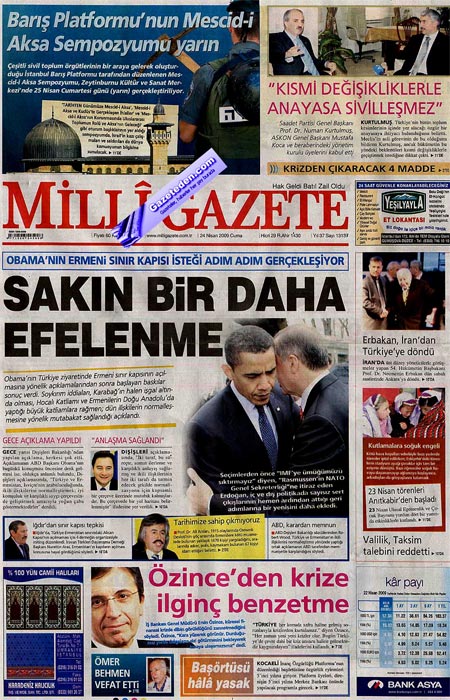 Hem Azerileri küstürmeden hem de Ermenistan'la normalleşmeye götürecek yol haritasının ayrıntılar bugün hemen hemen bütün gazetelerin manşetindeydi. Ancak Milli Görüşün gazetesi Erdoğan'a çok sert yüklendi.
