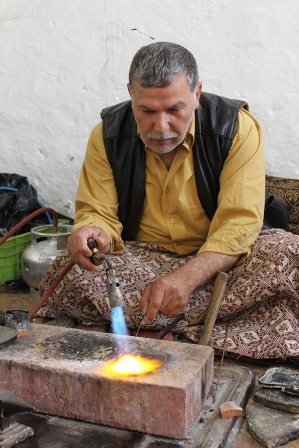 Cengiz”in kardeşi Yunus Aru küçük bir odayı atölye haline getirmiş. Dişini çektirdiği için baya rahatsızdı ama beni kırmamak için hemen tezgâhının başına geçti. Folklorik kemer tokaları yapıyordu. Kaba işçiliğini kendisi yapıyor, ince işleri için İstanbul”a gönderiyor ve yaptığı işleri toptan İstanbul”a pazarlıyormuş.