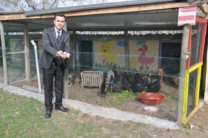 Okul Müdürü Engin Cihan, okul bahçesinde geçen yıl oluşturdukları mini hayvanat bahçesinde 15 tavuk, 20 ördek ve bir köpeğin beslendiğini söyledi.