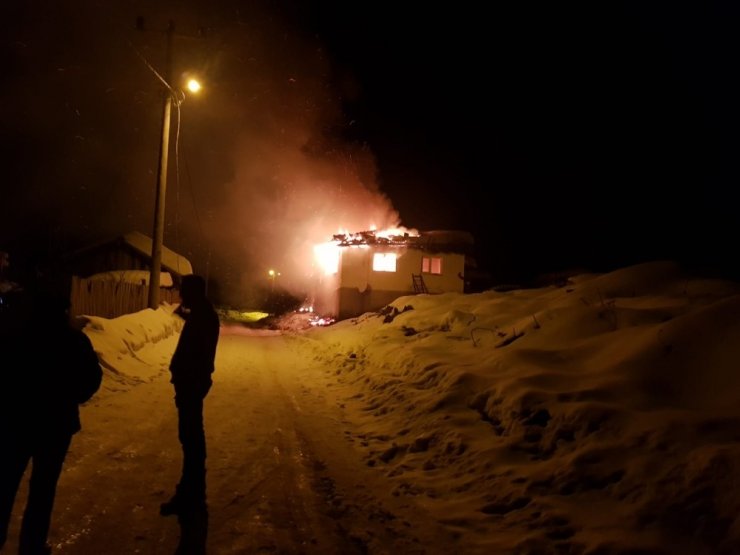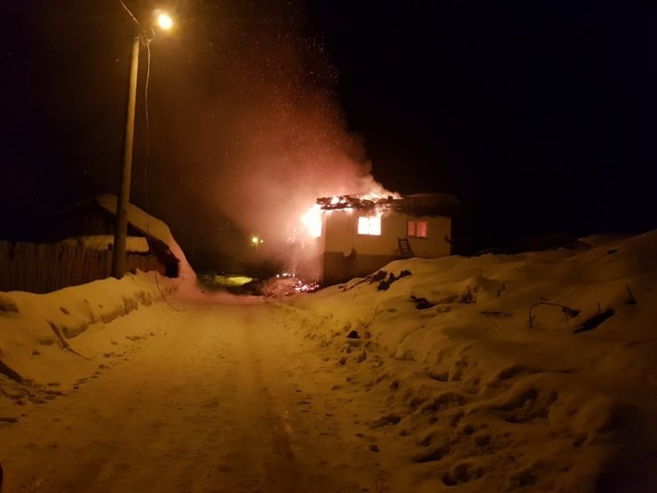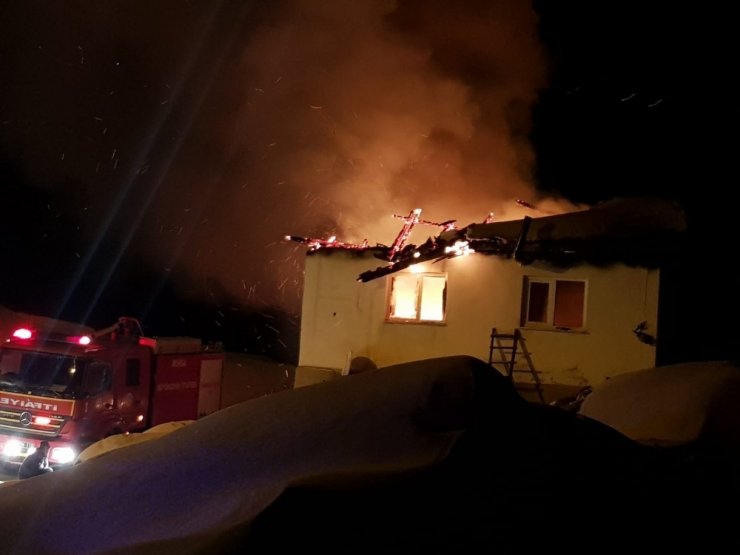 Bursa'da gece saatlerinde meydana gelen yangında bir ev ile samanlık cayır cayır yanarak kül oldu.