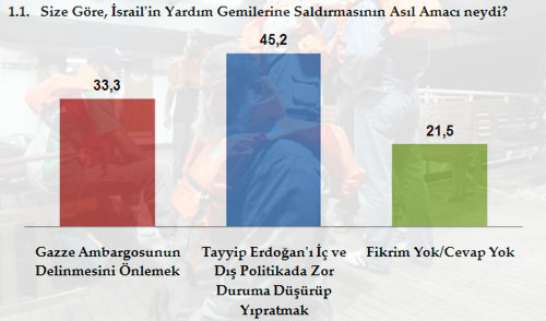 Araştırmada, 'Size göre, İsrail'in yardım gemilerine saldırmasının asıl amacı neydi? ve 'Türkiye'nin İsrail'e göstermiş olduğu tepkiyi yeterli görüyor musunuz?' sorularına yanıt arandı..