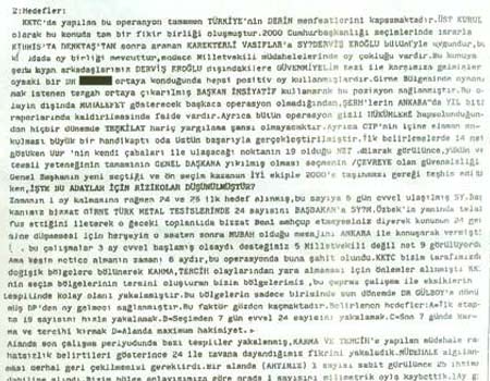 Ele geçen belgelerde ‘Başkanımız, intihar timi de dahil 26 kişilik çok özel timlerimizi orada bizzat operasyon planlarını yaparak 27/11/1998 cuma günü bırakarak gelecektir...’ gibi şok edici bazı bilgiler de yer alıyor.