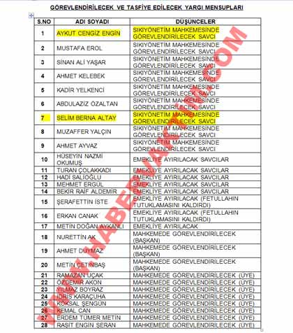 Aynı sütunun 5. Sırasında ise savcı Selim Berna Altay'ın ismi yeralıyor. Altay'ın isminin karşısına da aynı “Sıkıyönetim Mahkemesi'nde Görevlendirilecek Savcı” notu bulunuyor.