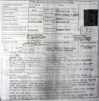 1. Kasımpaşa Deniz Hastanesi 22.01.1997 tarih ve 184 sayılı rapor ile B/45 f-4 askerliğe elverişli değildir. (Ahmet Hakan daha önce Sultan Fatih Hastanesi'nde bir mide ameliyatı geçirmiş ve bunu da dalağının alındığı Özel Bandırma Hastanesi'nden sevk edildiği International Hospitol'da kendisi beyan etmiştir)
