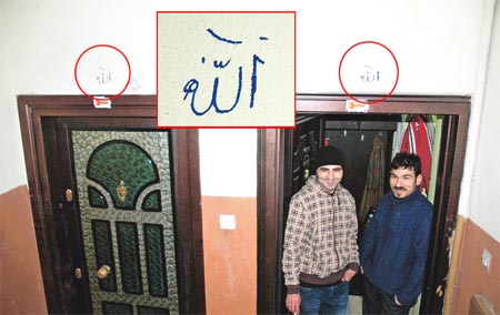 İstanbul'un Bahçelievler ilçesinde kimliği belirsiz kişi ya da kişilerce apartmandaki daire kapılarının üst kısmına Arapça "Allah" yazıldı.