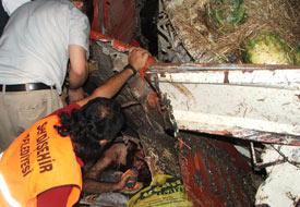 Kazada, devrilen kamyonun altında kalan sürücü Yıldırım, ağır tonajlı vinç getirilerek sıkıştığı yerden itfaiye, 112 acil servis, jandarma, bölge trafik ekipleri ve vatandaşların yardımı ile yaklaşık 1.5 saat süren bir çalışma sonrası ağır yaralı olarak çıkarılabildi.